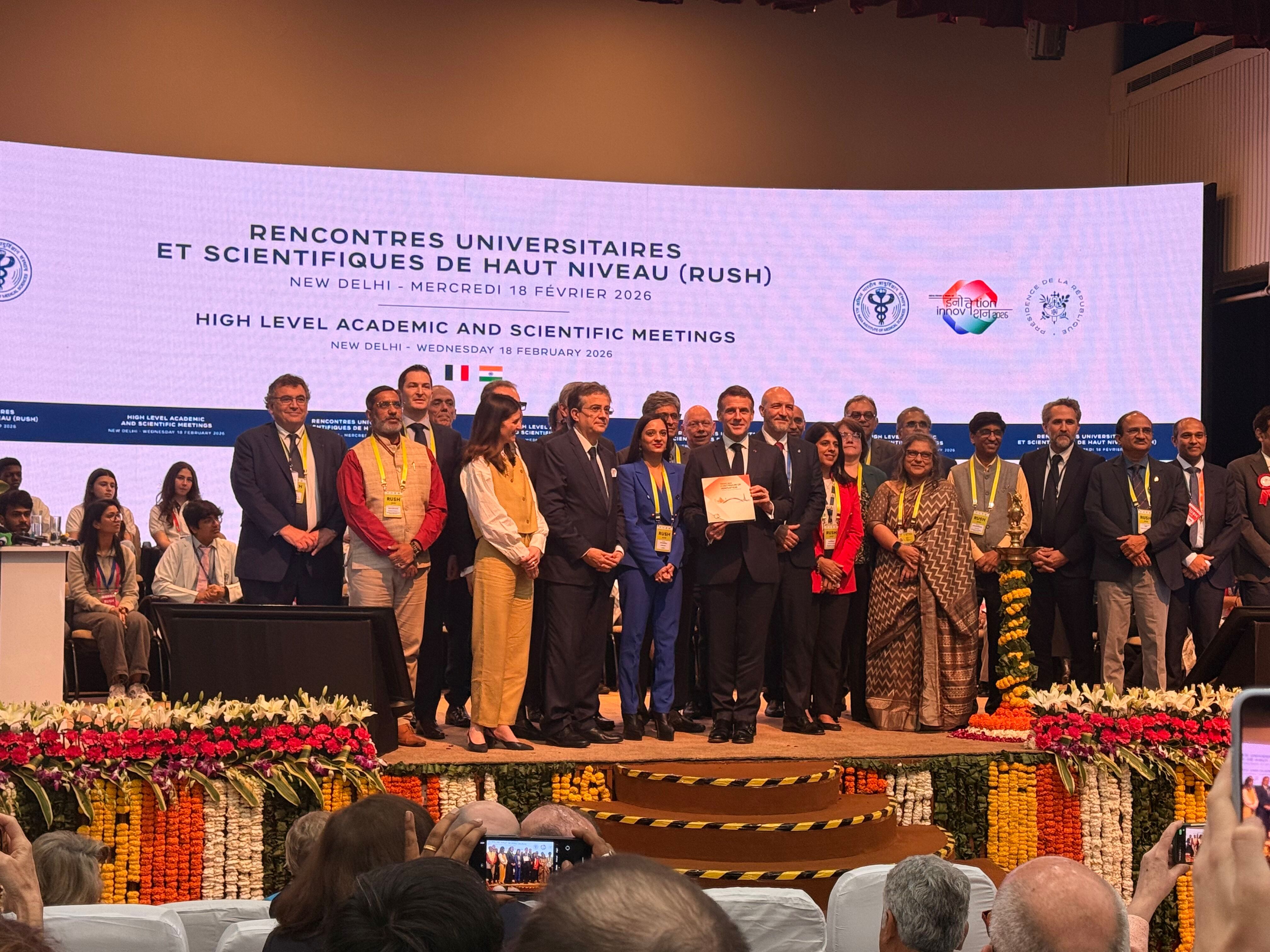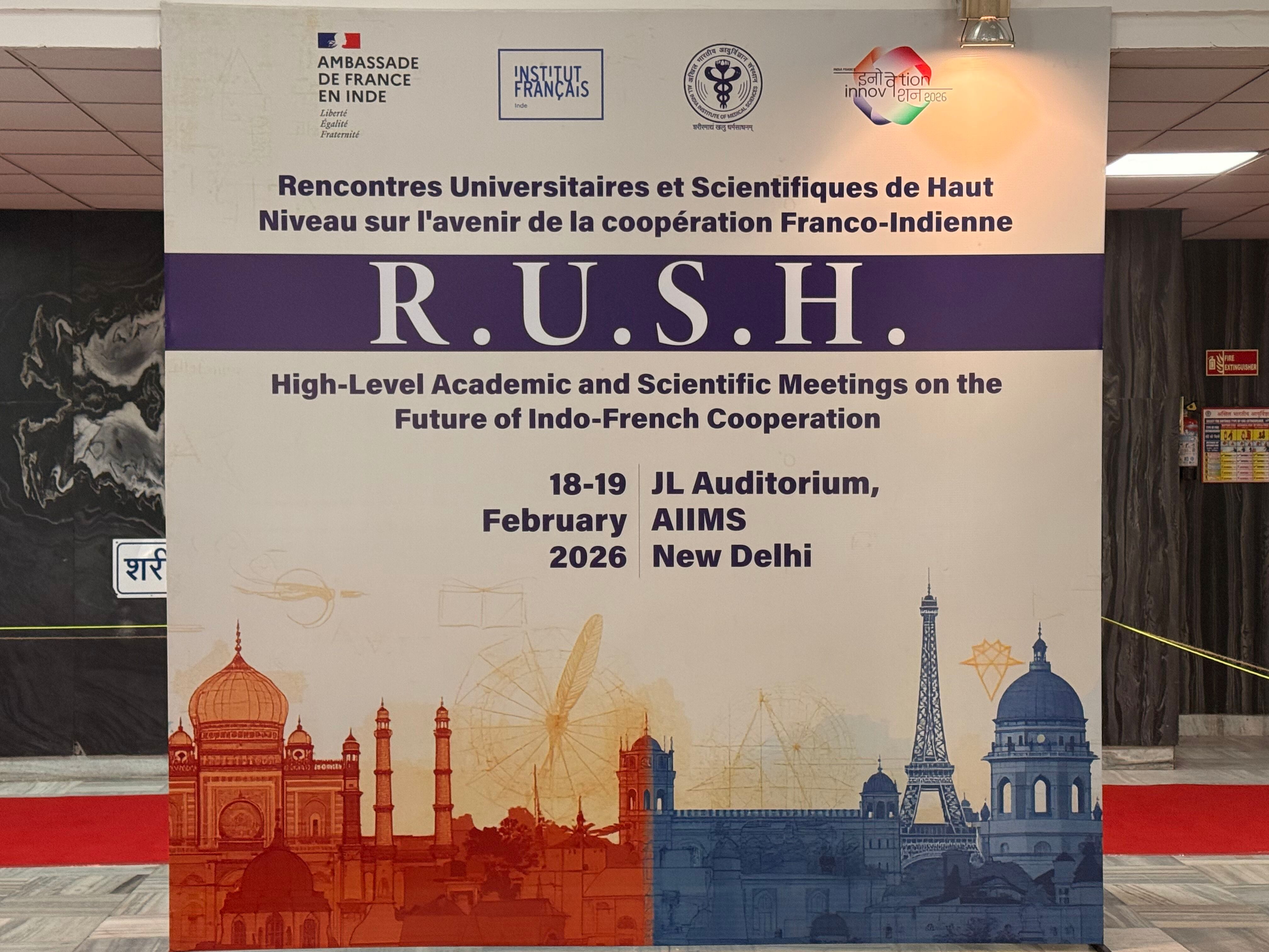 Dans le cadre de la visite d'État du Président de la République en Inde, l’Université Évry Paris-Saclay, représentée par son Vice-Président Hichem Arioui, a participé aux Rencontres Universitaires et Scientifiques de Haut niveau (RUSH) les 18 et 19 février 2026 à l’AIIMS (All India Institute of Medical Sciences) New Delhi.